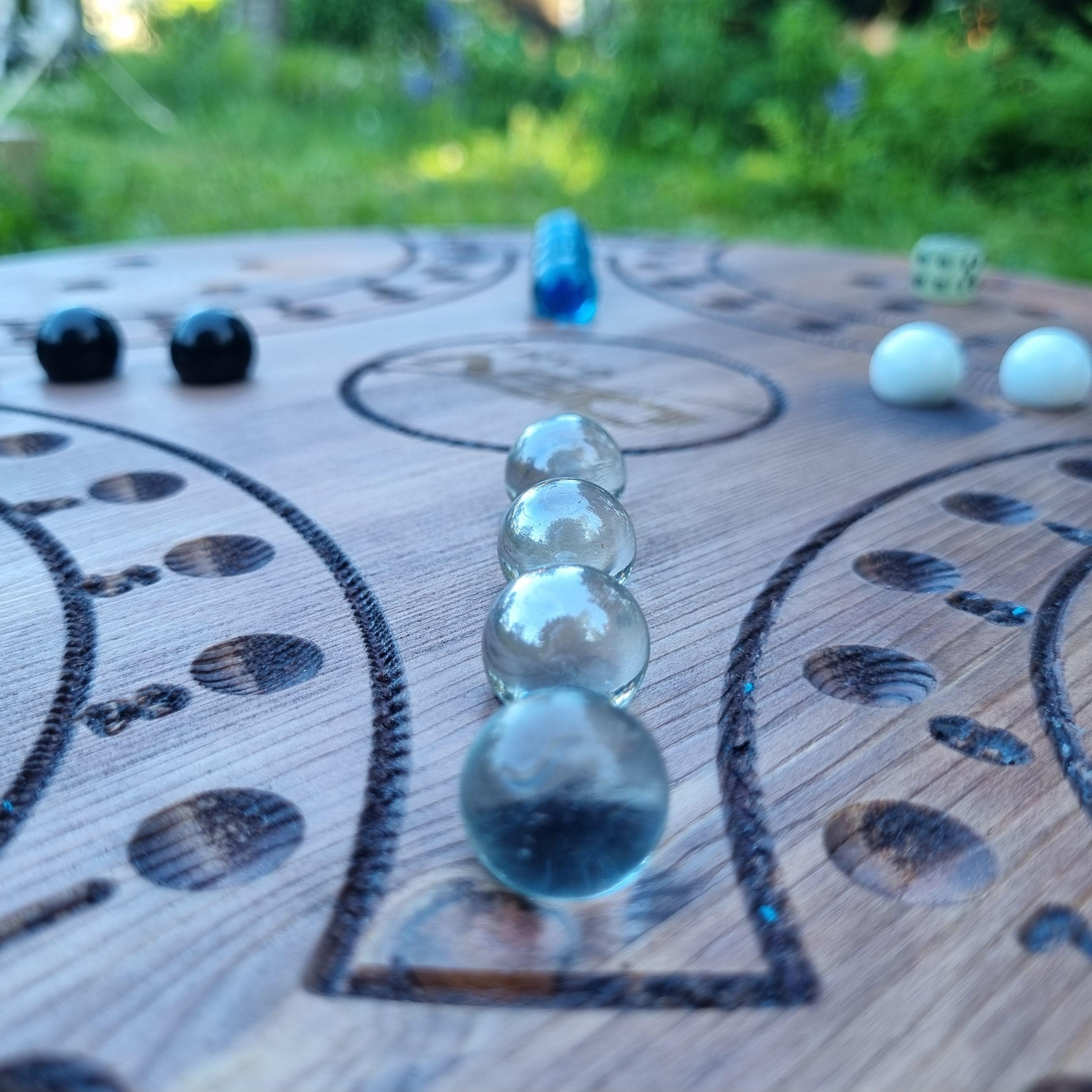 В составе: игровой диск для 4-х игроков, 4 комплекта шариков по 4 шт. разного цвета, игровой кубик 1 шт.